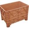 Injetada em plástico polipropileno (PP), possui encaixe para empilhamento e frisos que impedem o acúmulo de água.