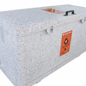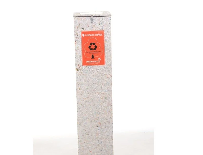Caixa ecológica com carvão ativado para armazenamento de 60 lâmpadas de 1,20m ou 60cm.